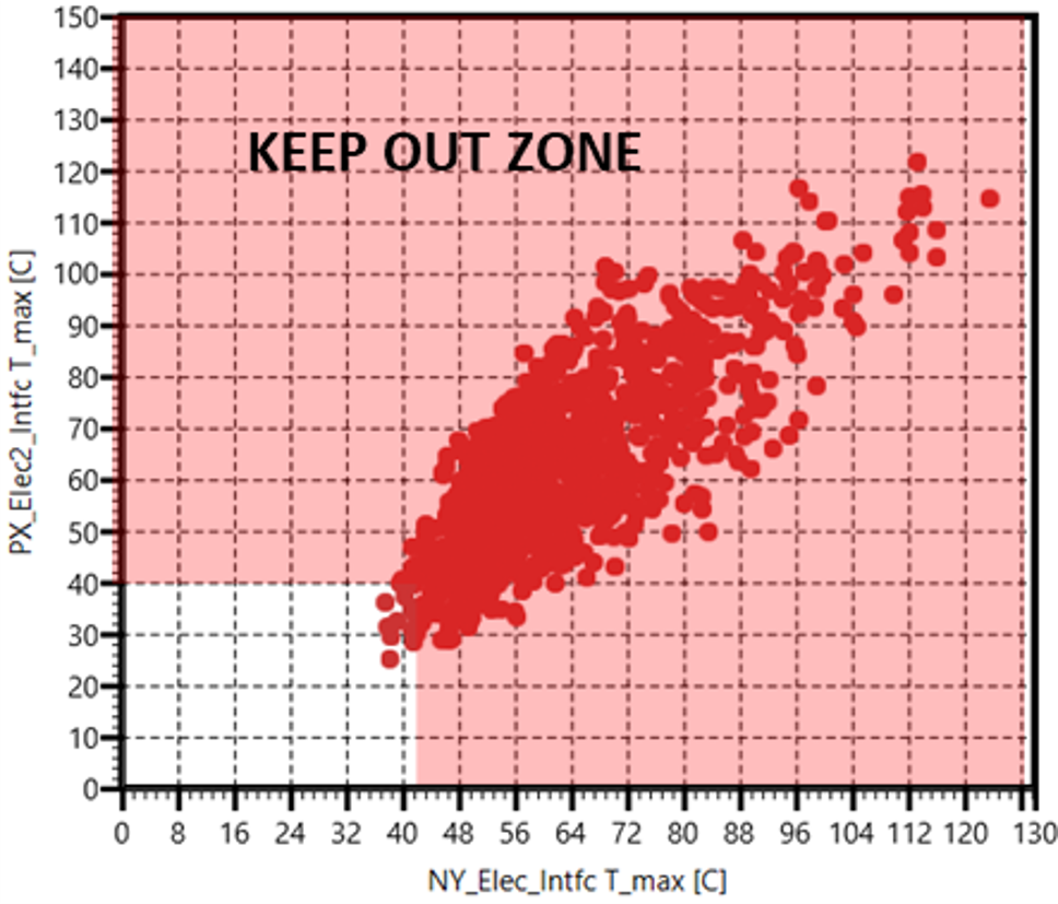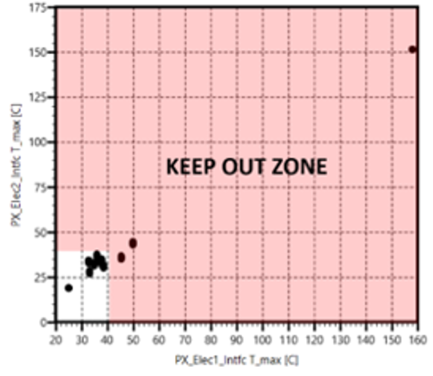 Veritrek’s Optimization Analysis plots out a design envelope for two output responses at a time, with tens of thousands of different design points. These design envelopes can be generated for all outputs of interest and filtered down to the best solution.